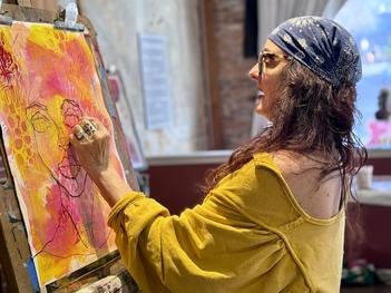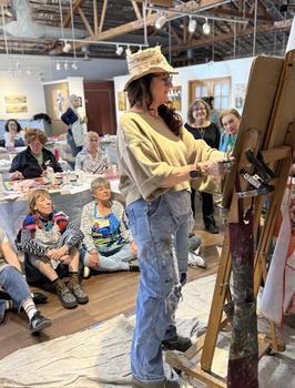 Traci has over 25 years of workshop teaching experience in the US and internationally. She is an international, award-winning, published, self-taught, artist/curator. For the past 15 years you can find her creating from her store front gallery/studio, “Studio eighte02”, in Auburn, CA. Traci is currently represented by three galleries in Northern and Southern California. She has 20+ solo shows under her belt and her work can be seen in wineries, restaurants, and ample shops around northern CA. She recently created a 24-foot mural in Malaga, Spain.
